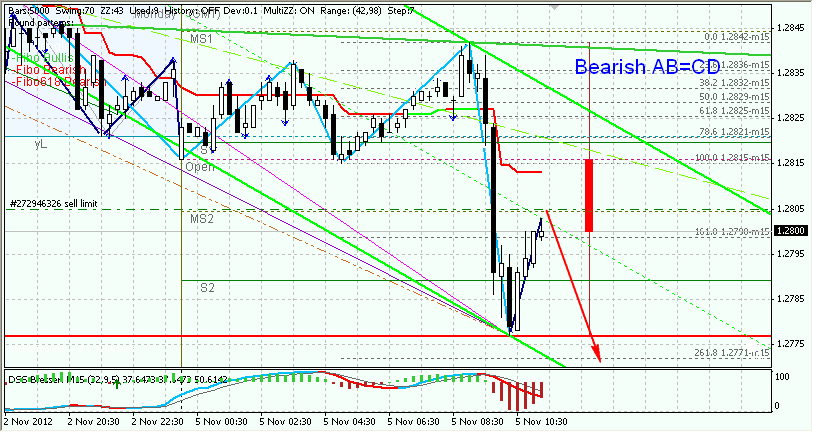 М15: склоняюсь к тому,что от текущих уровней,можем вернуться к границе наклонного канала. Murrex AO-отрицательно направлен,нет сигнала на продолжение снижения. Целевые уровни формирования цикла вверх:1.2820,1.2850.