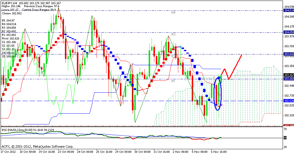 По евро йене на текущий момент явно рулят быки. Продажи рассматривать буду только после закреплении цены ниже уровня поддержки +/- 103,10. А пока что держу бак к ближайшей вероятной цели +/- 103,85...имхо