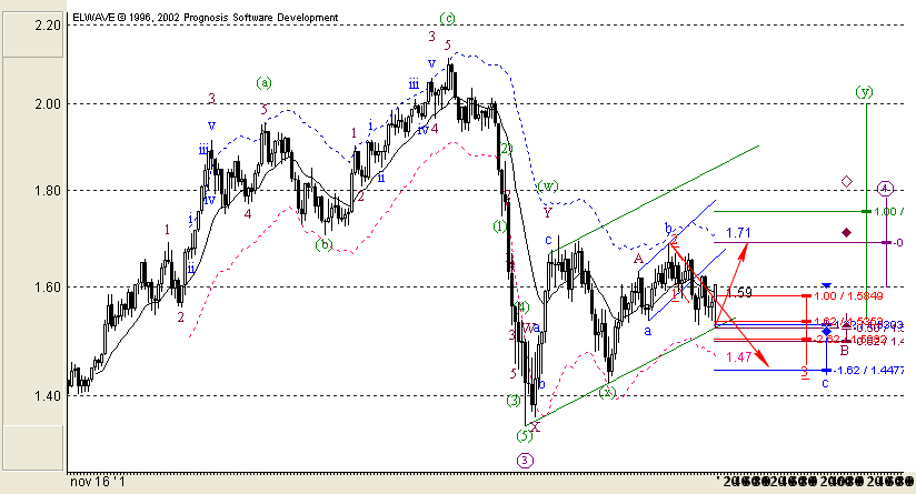 Цена не достигла целевого уровня А-волны. Также вызывает сомнения уровень основания с-волны. Поэтому, я в качестве основного сценария предполагаю снижение к уровню 1,5203.