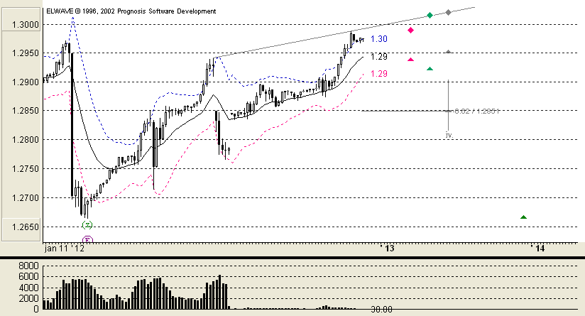 Целевые уровни, проецируются в район отметки 1.30, но при наличии позитивных фундаментальных данных, нельзя исключать и возможность удлинения волновой структуры. Если предположение верно и цена не нарушит ближайший критический уровень 1.2830, то в течении следующей недели, логично будет торговать на повышение, от локальных коррекций.