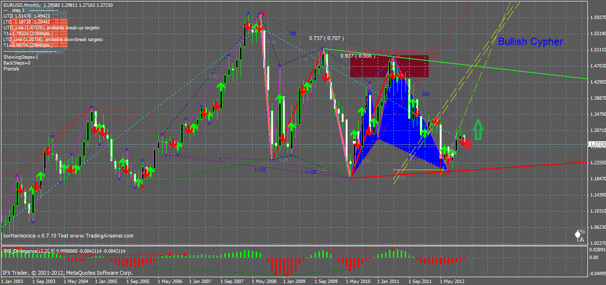 А если взглянуть на месячный там ,то такой сценарий был бы самое то,идет на коррекцию к уровню(50%)1.26 или может и (61.) 1.2470 ,ну а затем разворот к дальним целям к уровням 1.35 по идее,так как думаю этот зверь еще свое не отработал.