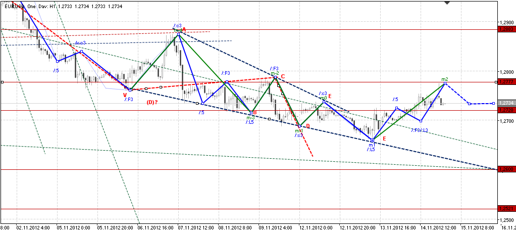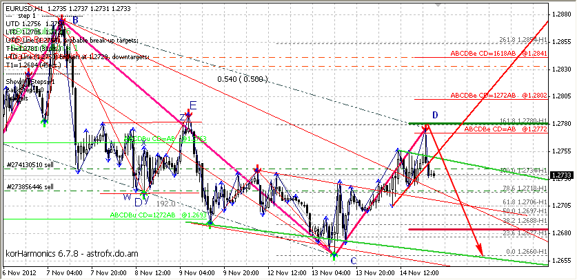 А меня в данном случае смущают уровни поддержки на 1,2695 и 1,2665, в особенности первый - как самый сильный из всех уровней Мюррея. Но на самом деле, мне как интрадейщику, сложно делать какие-то далеко идущие прогнозы, у меня например сейчас вообще присутствует сигнал на покупку с целями в районе 1,2761. )
