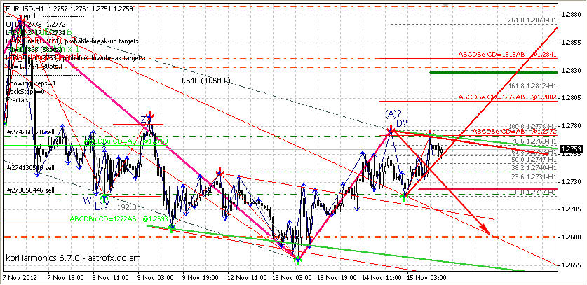 Не смогли на текущий момент быки пройти сопротивление +/- 1,2775. Но прокололи с формированием "Падающей звезды". Но пока придерживаюсь старой точки зрения: продажи буду рассматривать только после пробоя и закреплении цены ниже уровня поддержки +/- 1,2725...имхо