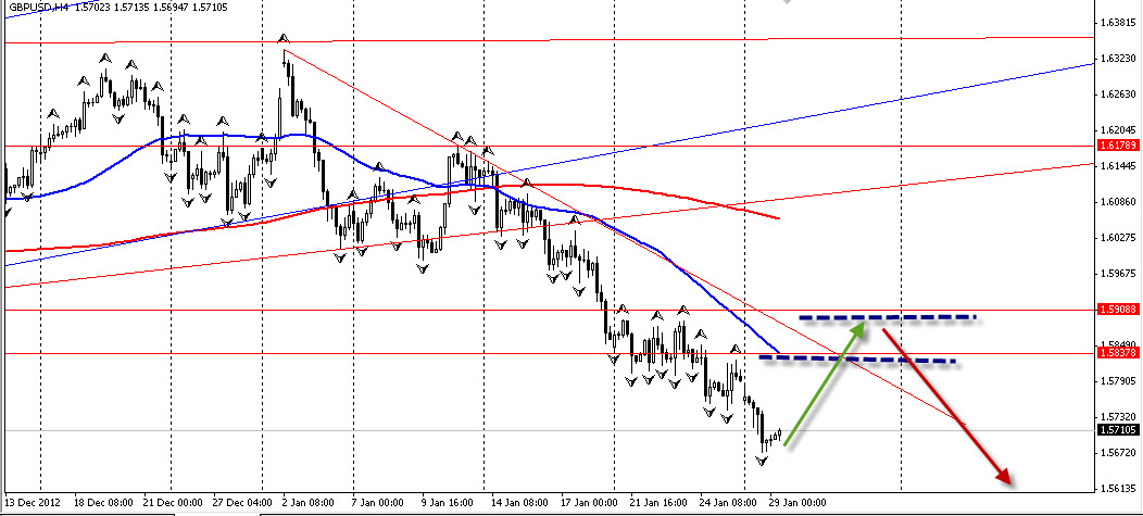 GBP/USD:пробитие границы наклонного канала.Пока уровень 1.5710 выступает поддержкой,возможен технический отскок.