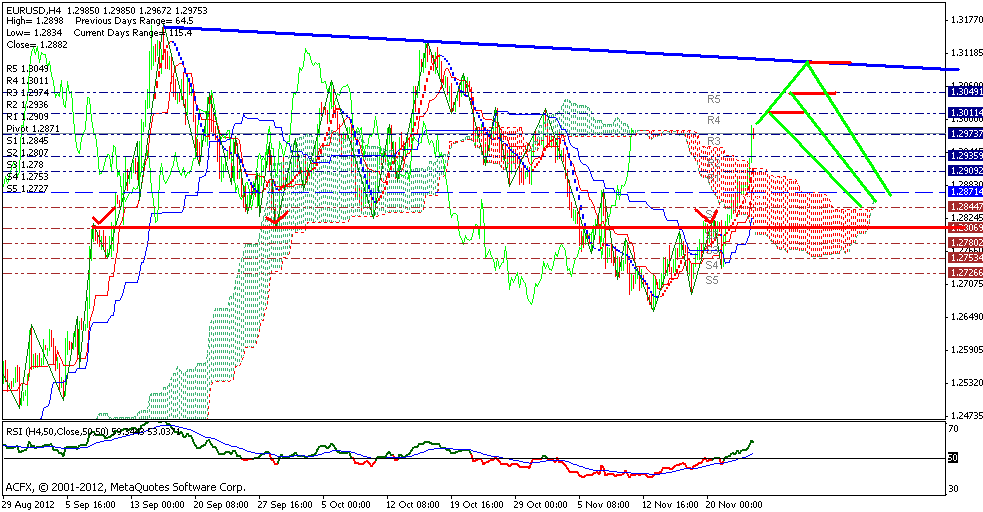 Флэт будет небольшой, интрадей. Даже 100 пп не будет. О развороте цены на верха возможно будет говорить только после переписи 1.34. До окончания месяца осталось 5 торговых дней. на этой неделе все будут фиксировать покупки и разворачиваться. Хай предыдущего месяца переписан не будет, даже не повторят. Цена красиво протестировала зону предыдущего флэта 1.28- 1.3160. Выше не смогла пойти за последние 3 месяца. По фундаменту - на саммите не принят бюджет по ЕС на 2013-2014 год. стоит задуматься. не хочу здесь разводить полемику на этот счет, но ситуация серьезная по ЕС. Расти не на чем. Если бы не понедельник, я бы уже в пятницу от верха селила, а так придется ждать вторника. |