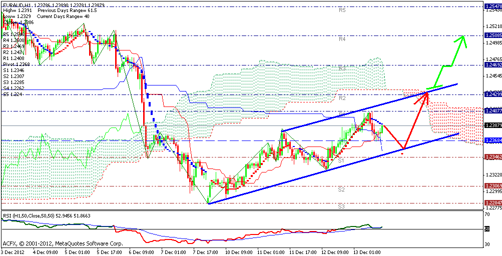пара торгуется выше тенкана . который пробил кинжут снизу вверх, что говорит о позитиве для роста. Пара находится в канале и основной тенденцией рассматриваю коррекционный откат в район нижней канальной линии на 1.2355-60, после чего рост пары может восстановиться к тп 1.2430.Пробой данного уровня будет способствовать дальнейшему развитию восходящей тенденции. Сопротивление - 1.2408, 1.2430, 1.2509 Поддержка - 1.2368, 1.2346, 1.2307