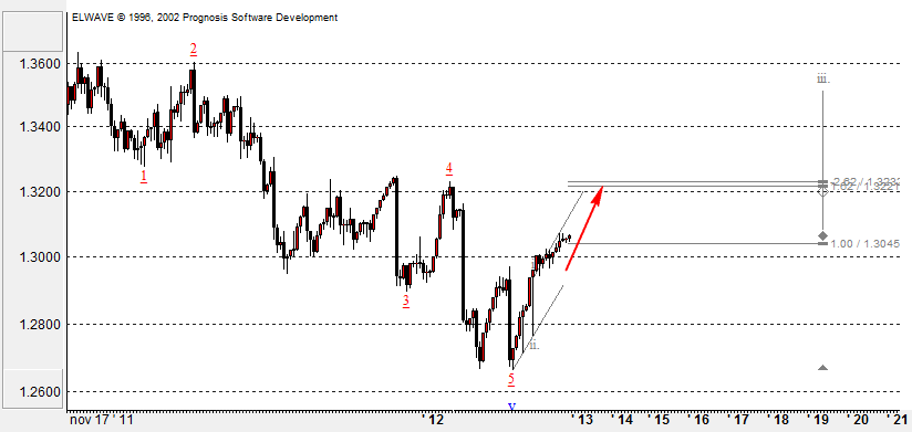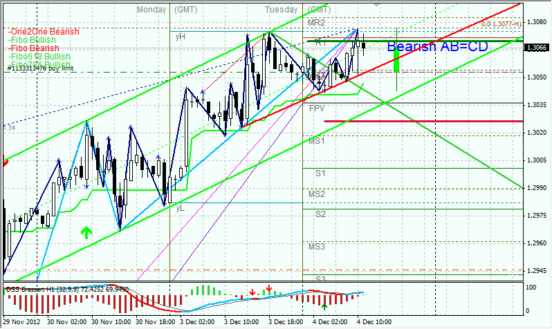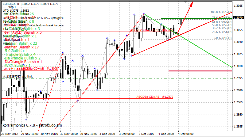 Да, отката пока не получилось, для входа в покупку. Соответственно и предполагаемый уровень, которого цена сможет достичь интрадей - фибо 161,8 (1,3095) тоже остался без изменений.