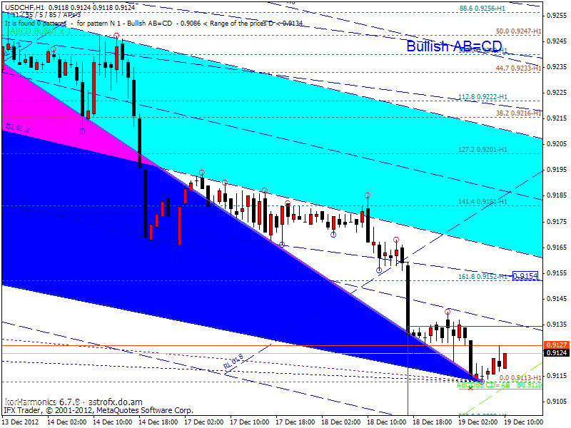usdchf. А вот франк, похоже собрался основательно откорректироваться. На часовике наблюдаем бычий паттерн по ЗУП и Гармоника сформировала бычий паттерн ABCD от уровня 0,9110. Считаю, актуальным купить прямо с текущих, стопы ставим на уровне 0,9085, профит ... ну это у кого какой карман. А вообще цели в районе 0,9220-40