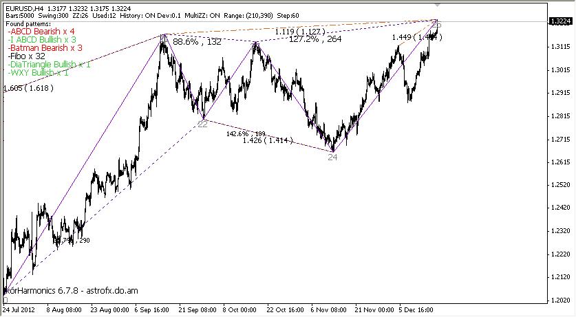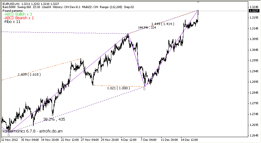 Сразу Роксане, чтоб не наезжала, конец года, надо бюджет правильно попилить, поэтому и молчу... Опять же, в выходные поэкспериментировал, убил архив котировок. Маялся с восстановлением. По поводу роста/снижения. Не сильно вдаваясь в детали, смотрим график ТФ Н1. Тут у нас до возможного окончания формирования С-волны еще пунктов 40. Но минимум уже отработали. Кстати, Штурман, и на ТФ Н1 можно нормально строить разметки. ![]() На графике ТФ Н4 - та же картина. Только вот отработка роста прослеживается более явственно. ![]() Но есть еще один момент, 161,8% - это классика. А может быть и 100% и 261,8%. |