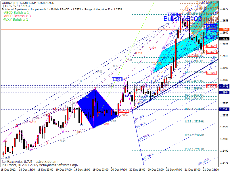 audnzd. На часовике видим, что пара отработала бычий паттерн и после небольшого отката, снова сформировала восходящие вилы Эндрюса. Полагаю, что пара продолжит восходящее движение к уровням 1,2670-90 уровни медианы канала равновесия.