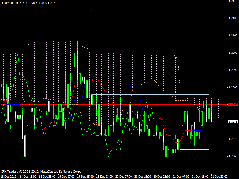 ![]() eurchf. Вот так всегда, только определишь цели по ЗУП и тут "дядя Эллиот" карты путает. Получается у меня такая картина, что рост максимально может продлится всего лишь до 1,2095 и далее цели находятся внизу, не далеко не близко, на уровне 1,2037. Получается в перспективе снижение. ![]() Eurchf. Вот если смотреть по ишимоку (12,24,120) то пара не смогла пробить Сенкоу Б и уже два раза отскочила. Здесь ситуация получается пока не определенная. Пара и не закрепилась ниже облака, но и не выше. Вообщем наблюдаем за уровнями пробоя или отскока и решаем