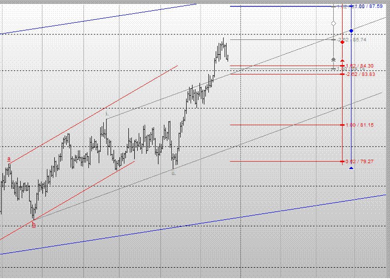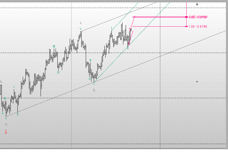 ![]() audnzd. Если раскинуть по Эллоту на часовике, то выходит, что еще не сформирована подволна два. Ее цели отработки находятся примерно на уровне 1,2710. Но и уже достигнут первый таргет, от которого может сформироваться и нисходящая волна. Но основное движение остается восходящим.