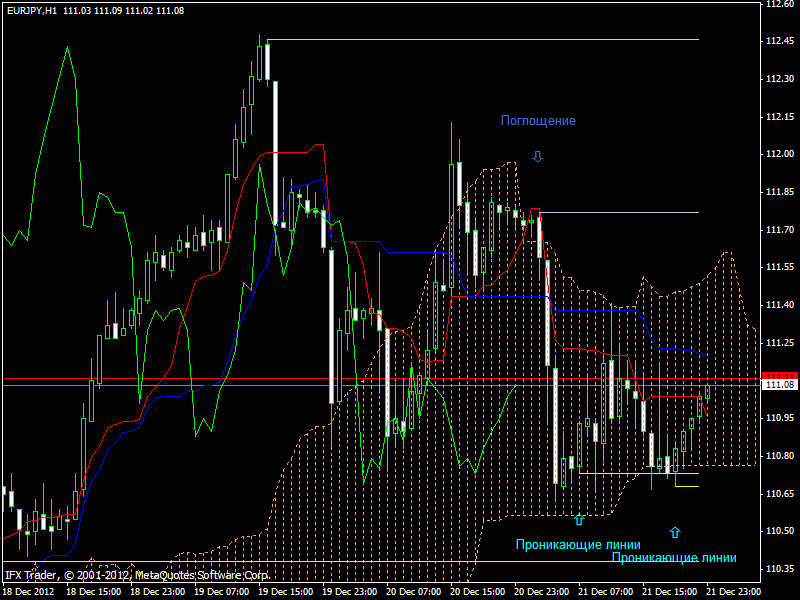 ![]() eurjpy. Все как бы и подходит под расклад ЗУПа. По Эллиоту получается такой расклад. На данный момент пара сформировала четвертую волну. И цели формирования пятой волны получаются на уровне 112,34, возможно даже к 113,41 ![]() eurjpy. Вот смотрю я и по ишимоку (12,24,120) намечается дальнейший рост. В принципе можно считать, что пара отскочила от Сенкоу Б и успела до закрытия рынка пробить Тенкан. Рассчитываю на дальнейший пробой Кеджуна и Сенкоу А и закрепление пары выше облака.