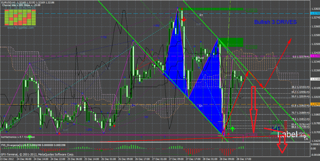 Еще вот на дневном графике смотрю,ведь по идее от 100% движения вниз и к к 32% так и не откарректировалась пара ,значит есть возможность вниз сходить ,хотя бы к (38.2)1.3143 получается ,но опять же евра не особо любит коррекции как тот же фунт или ЕЕ ,но все же ,еще дополнительный пинок как бы вниз), а вот примерно от туда и как раз в рост можно идти,заодно и стопы пособирать,как грибы зимой))