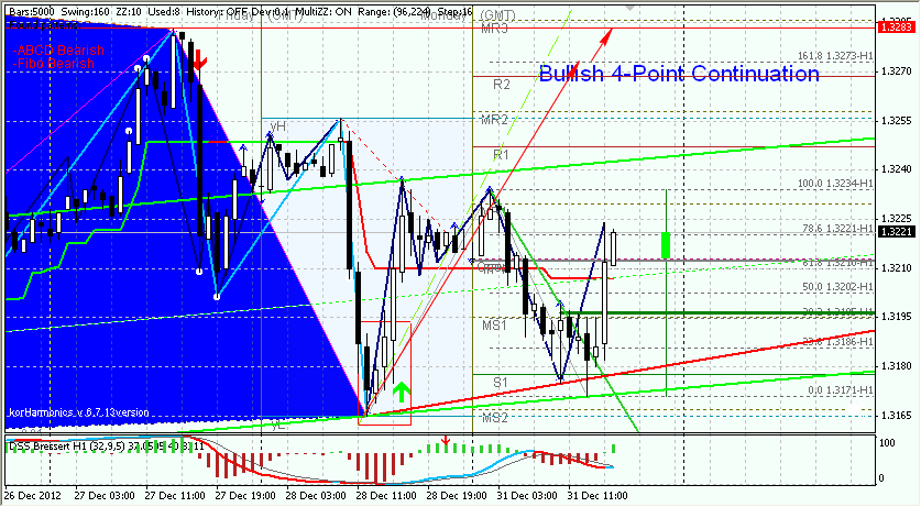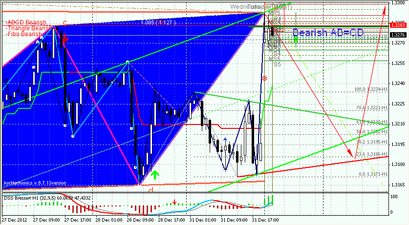 Вот еще дети заедут... Просто зашел посмотреть, что с рынком делается. Походу, выеживаются маркеты на тонком рынке. И все равно, надо отрабатывать в интрадее этот паттерн. Цели получаются две: 1) уровень фибо 161,8 (1,3273); 2) уровень точки D (1,3283). Про волновую структуру я писал. Так что, все закономерно.