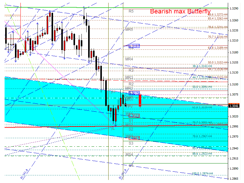 eurusd. Торговый день начался с того, что пара уже прошла 30 пипок вниз и похоже собирается пройти пивот и направится на юг. На Н4 наблюдаем, что пара находится в канале равновесия в нисходящих вилах Эндрюса. Предположительно пара будет снижаться, хотя при закреплении выше сопротивление 1,3079, лучше рассмотреть покупки.