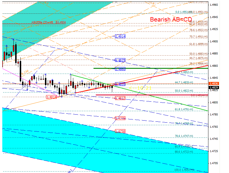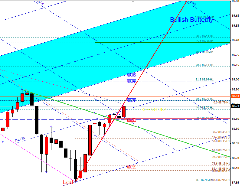 В силу того, что на дневках не очень отчетливо просматривается возможность входа в рынок, пытаюсь найти возможность на графике ТФ Н1. И становится понятно, почему такая неопределенность. Дело в том, что вчерашнее нисходящее движение дало основание полагать, что имеется импульсное снижение младшего разряда в рамках третьей общего роста.