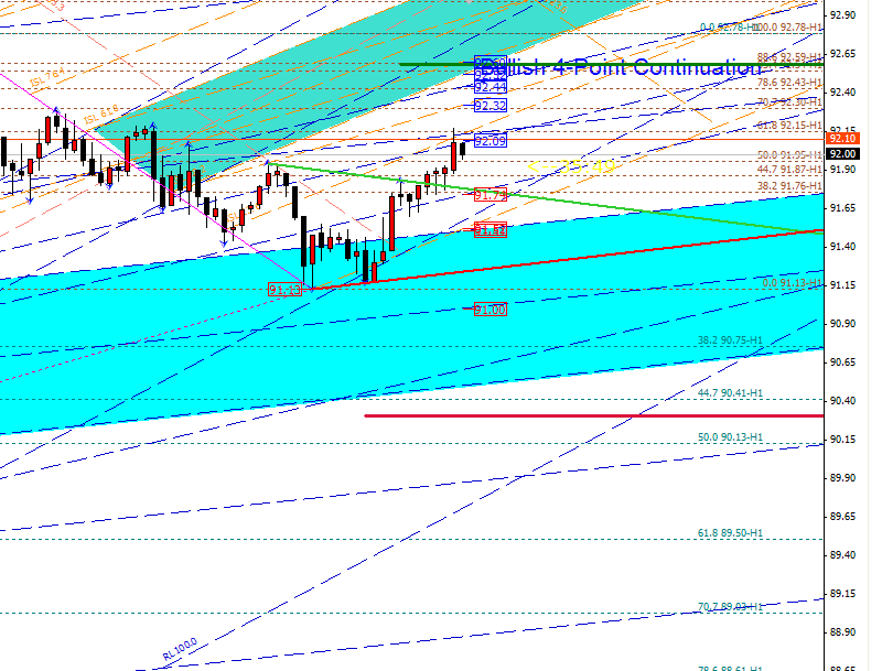audjpy-H1. Хоть пара и двигалась в восходящих вилах Эндрюса, но при этом после отката образовала еще одни. Предположительно пара будет стремится к медиане канала равновесия, а это как минимум 92,60. В случае снижения пары к поддержке 91,74-70 пара сможет пробить канал равновесия и спустится вплоть до 90,75