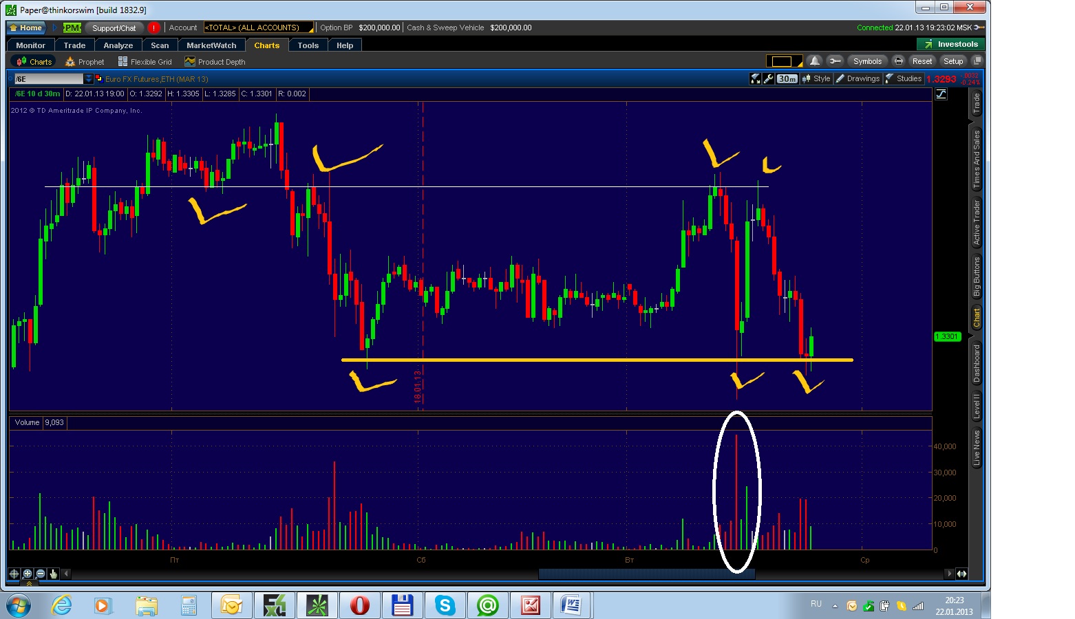 ![]() Открыл график, сразу в глаза бросилась конструкция похожая на три вершины...да и по Мюррею отскок от 7/8 (1.3367) должен к 4/8 (1.3184) отправить... но ... уже третий раз отскакивает и все никак... потом ещё раз глянул, линии провел... мысль закралась: "может это - вымпел"?... в-общем, пока ясно только одно, если 1.3256 пробьет, тогда опускаться будет, как раз к 4/8... а вверху... там тоже цели есть, ну самая очевидная - 1.3428... а дальше как пойдет |