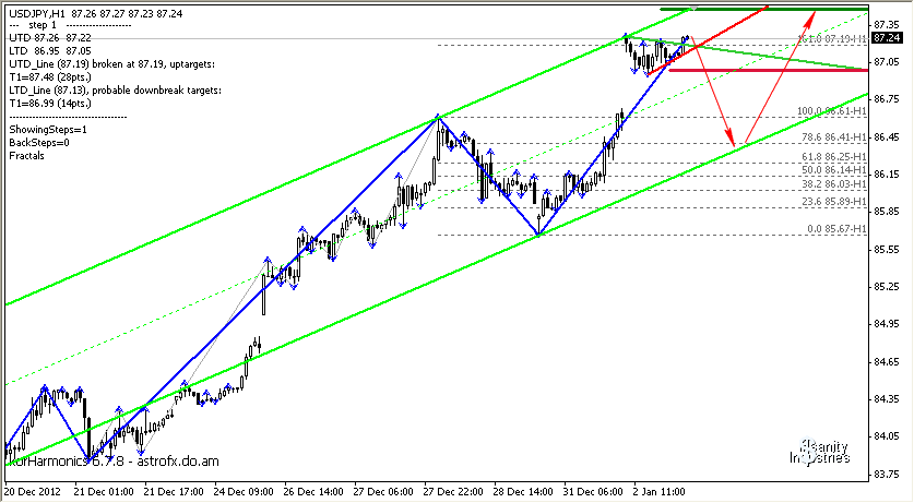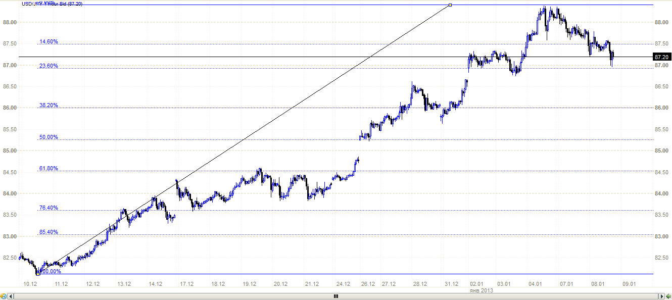 USD/JPY: пока уровень 88.2 и граница наклонного канала выступают сопротивлением,возможно снижение пары .