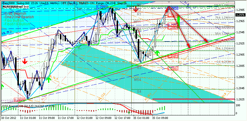 А первая цель роста отработала... Я так понимаю, сейчас цена доберется до фибо 50 (1,2957). Здесь же и дневной пивот 1,2955. И будет какая-то коррекция роста. Вряд ли ниже 1,2922. Посмотрю по закрытию часовой свечи, вероятно поставлю бай-лимит.