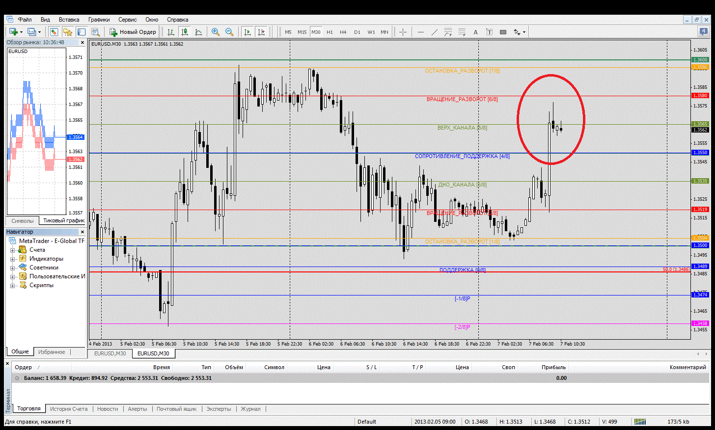 ![]() Я заходил 1.3555 и закрылся смутил пин бар образовавшийся после объема, причем образовался на меньшем объеме. значит покупатель уже не поддерживал покупки, жду отката, в продажи рано, так что пока думаю вниз пойдем, удержал пин бар уровень мюрея ( тоже самое и фобо), пока на заборе, но тенденция восходящая т.к 1.3550 побили на объеме |