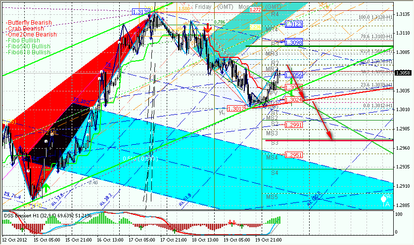 продажи рассматриваю от двух уровней - настоящий на отметке 1.3045 и следующий на 1.3060 . В случае пробития последнего уровня продажи отменяются и тестирование уровня 31 фигуры .В обоих случаях шортов цели 1.3