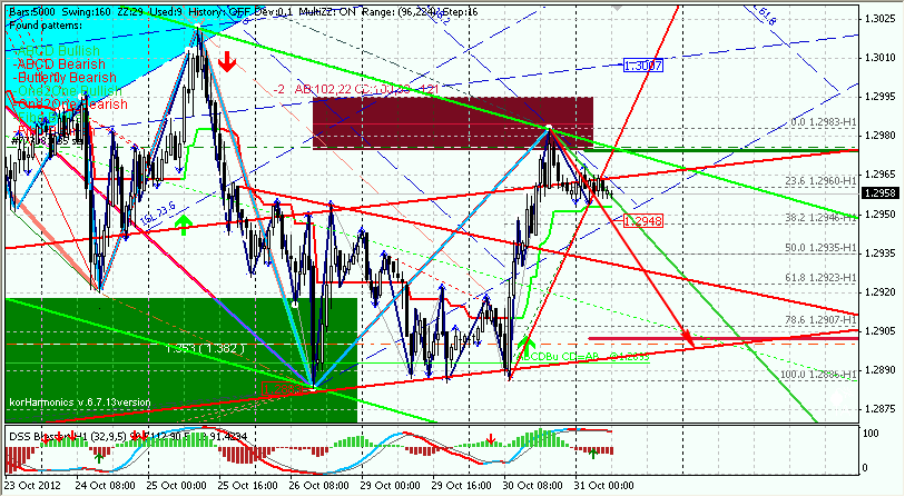 Самое страшное, что можем показать - 1.3020. А лучше с текущих - вниз и без компромиссов! Раскопала старый график. Наносила уровни более месяца назад. Сегодня не исправляла ничего. Неделю, а следовательно, и месяц должны закрыть ниже 1.2882. А следующий уровень у нас 1.2822.