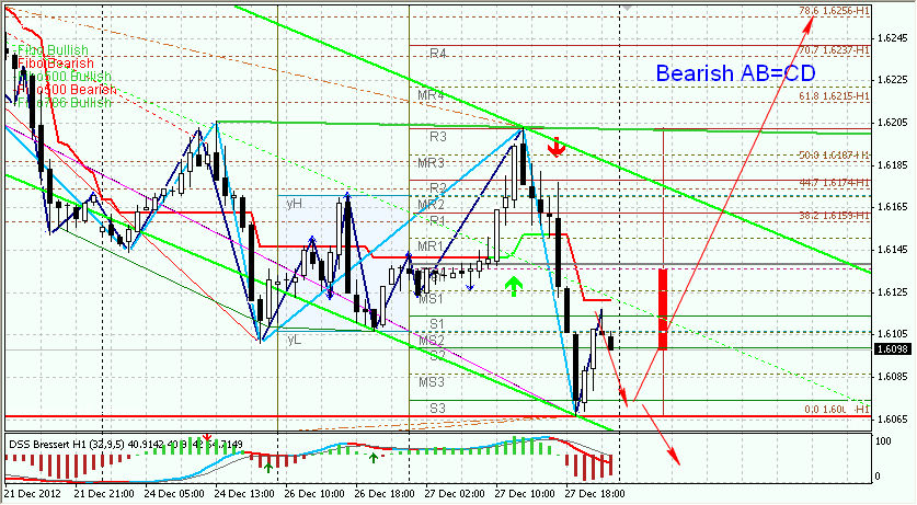 С одной стороны, то, что достали линию поддержки (я ее еще в пятницу рисовал, как цель снижения) - уже можно считать выполнением медвежьих целей. Есть у нас тут прикольный уровень еще - 1,6074, можем от него и отбиься вверх. А пока - обязательно туда сходить.