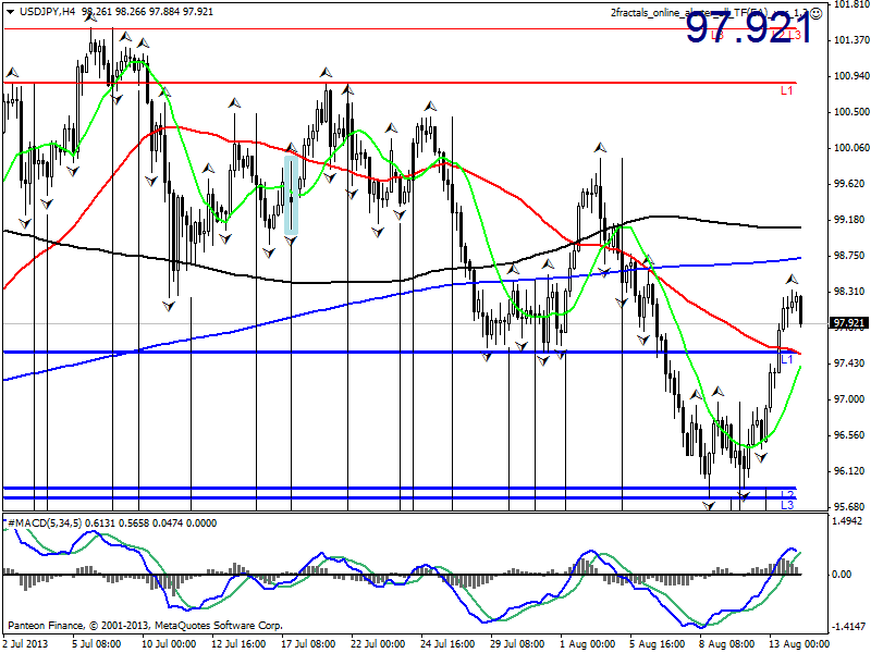 очень неплохой ход оказался по паре USD/JPY,цена прошла более чем 100 пунктов ...и сейчас образовалась двойная вершинка...не думаю что так скоро будет разворот,но на откат к отметкам 97.85 надеяться то можно...думаю при завтрашнем продолжении цена не должна уйти ниже 97.85 иначе будет может пойти еще одна волна продаж к 97.40..