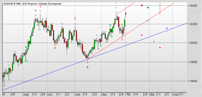Фунт бакс хорошо полетел на север в третей импульсной волне по Эллиоту. На текущий момент быки пытаются закрепиться выше уровня сопротивления +/- 1,6292. Я так думаю, что если быкам это удастся, то полет на север продолжится. В любом случае, на текущий момент оснований для продаж пока что нет. Вероятными целевыми уровнями поддержки для медведей могут быть уровни +/- 1,6253 и +/- 1,6242: