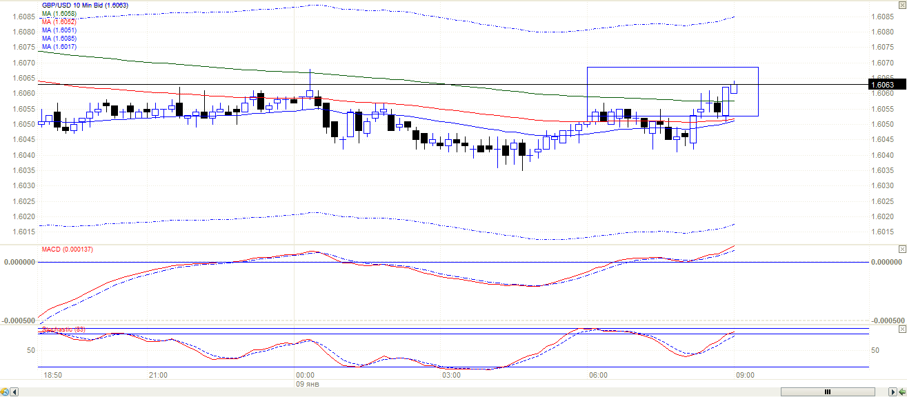 По фунту доллару на текущий момент цена находится во флэте. Я так думаю, что для входа в рынок нужно дождаться выхода из данного флэта. таким образом, пробой уровня поддержки +/- 1,6027 будет сигналом для медведей с ближайшим целевым уровнем поддержки +/- 1,5966. Пробой же уровня сопротивления +/- 1,6067 будет сигналом для быков с ближайшим целевым уровнем сопротивления +/- 1,6126: