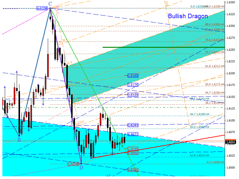 Вот это метание вообще из колеи выбивает. На Н4 вроде как и пробили трендовую, я полагал, что сопротивление 1,6071 особо не задержит. А оно не тут то было, пара взяла и отскочила от верхнего края канала равновесия. Сейчас или снова будет тестировать этот уровень или же пойдет на штурм 1,6040-32.