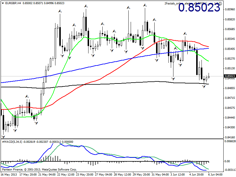 По паре евро фунт на графике видно четко что мы толкнулись в МА200 на Н4, в этом случае я буду ждать корекции пары до МА13, даже возможен недоход к ней, и входить в селл, в случае пробития 200 мувинга, целью буду ставить МА600 на дневке, обязательно учитывая МАКД.