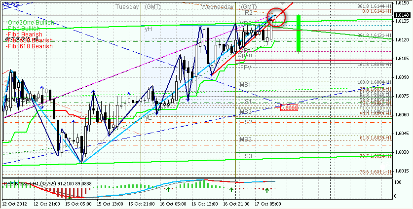Murrex AO-положительно направлен,нет сигнала на продолжение движения вверх. Целевые уровни:1.6140 и 1.6115