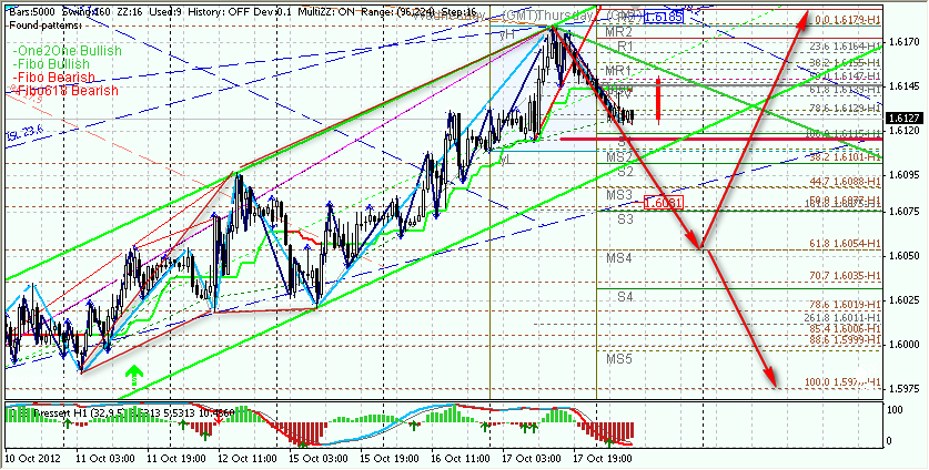 1) продолжение снижения к последнему лоу на уровне 1,5976; 2) возврат к восходящему движению с целями в диапазоне 1,6215 - 1,6235.