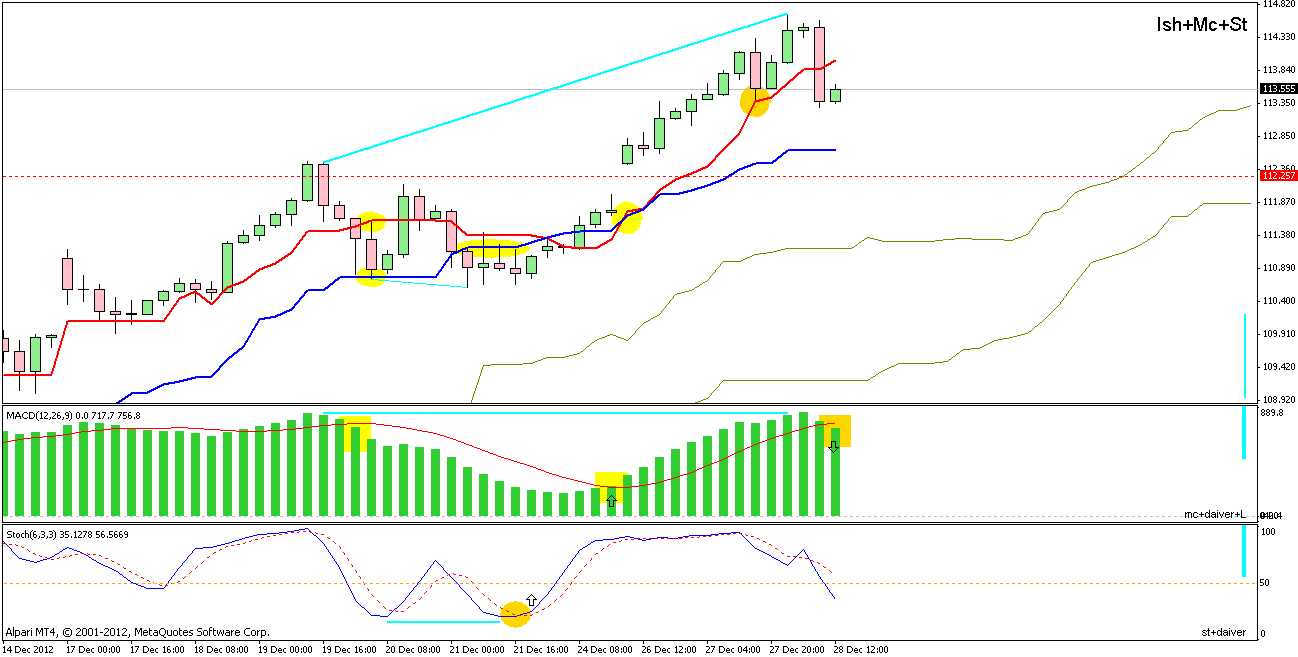 А вот по евро-йене, похоже вскоре появится сигнал к покупкам. Дело в том что на Н4 по МАКД-и образовывается дивергенция, а значит текущее снижения продлится еще немного, а при ее завершении появится хороший уровень для входа в лонг,