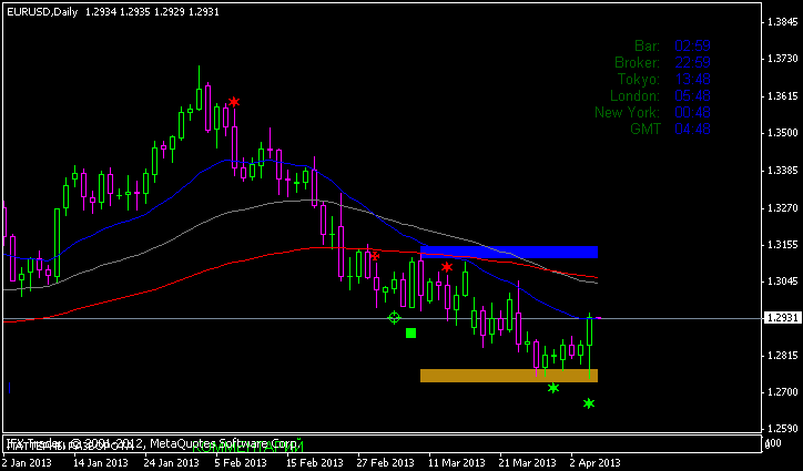 Похоже еврик таки разворачивает тренд вверх наконец, но наверняка этого сказать нельзя, но судя потому как сегодня обманывала цена это вполне вероятно, но более точно можно сказать об развороте когда цена поднимется выше уровня 1,3048, именно пробивая его цена нарушает структуру нисходящего тренда на восходящий.